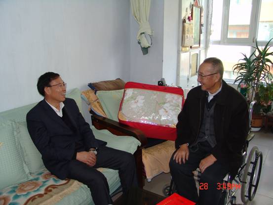 2013年1月28日,春節來臨之際,省委組織部王志明副部長在省國資委黨委副書記毛占彪、物產集團領導白家林、王仁芬的陪同下,走訪慰問了集團系統生活困難老黨員肖振東。王志明副部長親切地詢問肖振東的身體狀況、生活和家庭情況,發放了慰問金和慰問品,并希望他保重身體,愉快安度晚年。老黨員肖振東激動地表示感謝黨組織的關懷,感謝上級領導的關心!