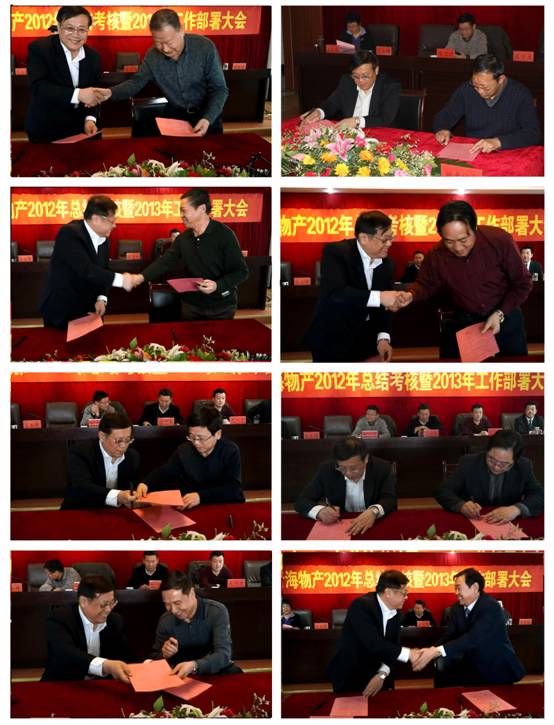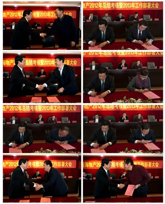 會上,由集團總經理王玉輝與所屬各公司、集團各部簽訂2013年經營業績目標責任書,由集團黨委書記白家林與所屬黨委(總支)、直屬黨支部簽訂黨建工作目標管理責任書、與所屬各公司法定代表人簽訂黨風廉政建設責任書。